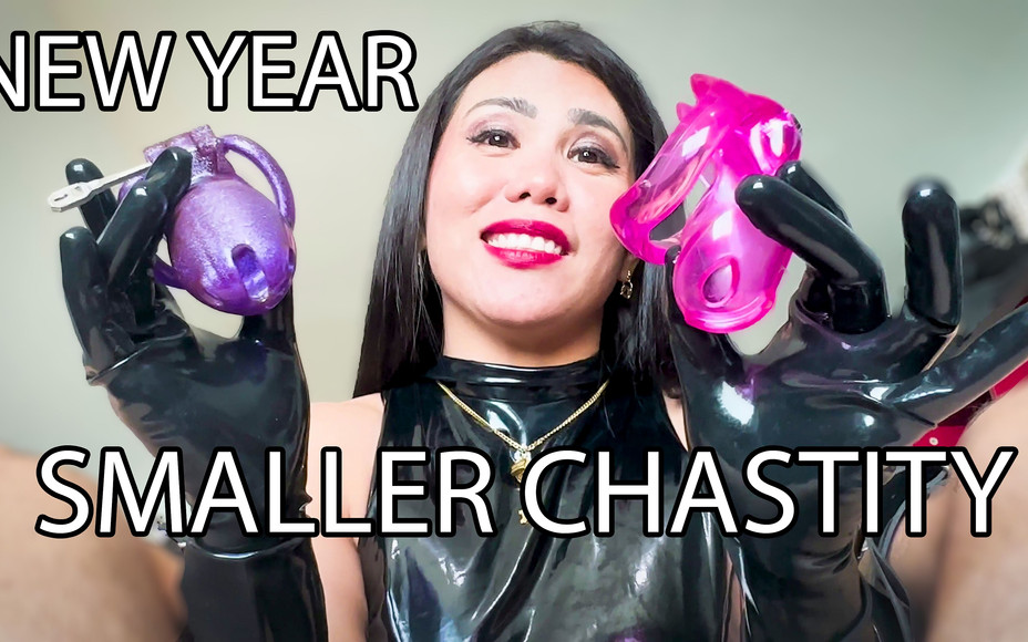 Asian Dominatrix DominaFire Shrinking the chastity of her sissy slave