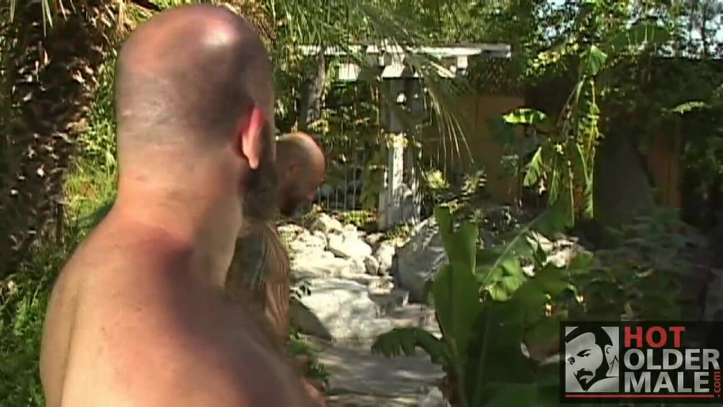 Dan comes out of the pool to find hot bearded bear Jeff Wells naked in the sun. Dan can't oppose the view and Jeff is awakened by Dan's shadow. The two disappear into the Bear Oasis where Dan first warms Jeff's cock with his hot mouth and throat before the two swap blows. Jeff thoroughly enjoys Dan's fat uncut cock (wouldn't we all?!), before zeroing in on Dan's oh-so-fuckable hole. Soon he's deep inside and gives Dan a hard pounding from behind.