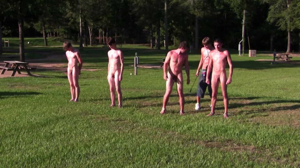 Four hot studs -- DJ, Donnie, Jackson and Troy – are camping in the woods at a cabin site in the middle of nowhere. To their surprise, they wake up butt naked, feet shackled together at the ankles. Master Lee promptly informs them their parents sent them to this particular campground so Lee could teach these four fuck-ups to respect authority. After a brief shower, Master Lee inspects the naked boys in broad daylight, the sun highlighting every muscle, curve and sweaty crevice of their firm young bodies, until he finds just the butt he is looking for. Next Week: Which butt is chosen for a good, hard fuckfest?