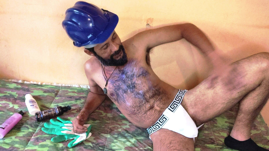 Showing my hairy attributes, covering my body beard ointment, it has dark, black color, so my hairy body gonna look like more dark than it´s normal.