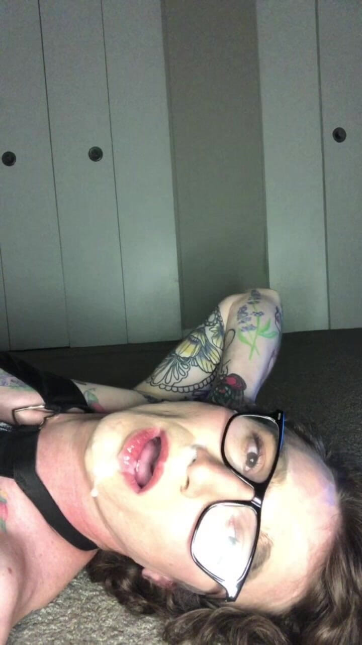 Silly little sissy Tessa River toys her ass. Teasing herself while locked in chastity. She pushes herself to the brink multiple times and when she's finally allowed to cum. She lays on her back. Curls her legs over. And cums all over her own face and into her own mouth!