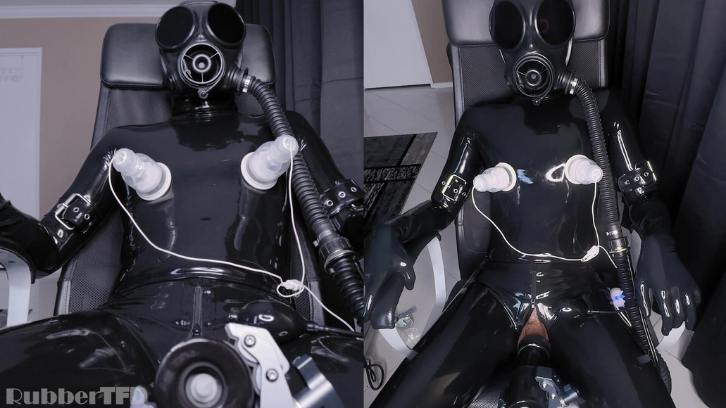 A series of me sitting in the office chair and edging myself with a milking machine with a little pp from the air pump (climax 13:51, cumshot 16:19).